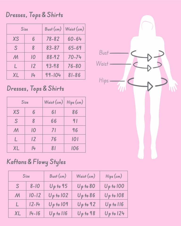 Our garments are designed using standard Australian sizing to ensure a flattering, comfortable fit.